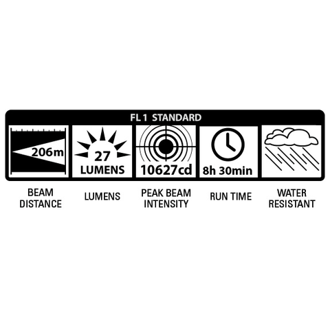 High-intensity adjustable light beam (Spot to Flood), Rugged, machined aluminum construction with knurled design, Anodized inside and out for improved corrosion resistance, Spare lamp safely secured inside the tailcap,