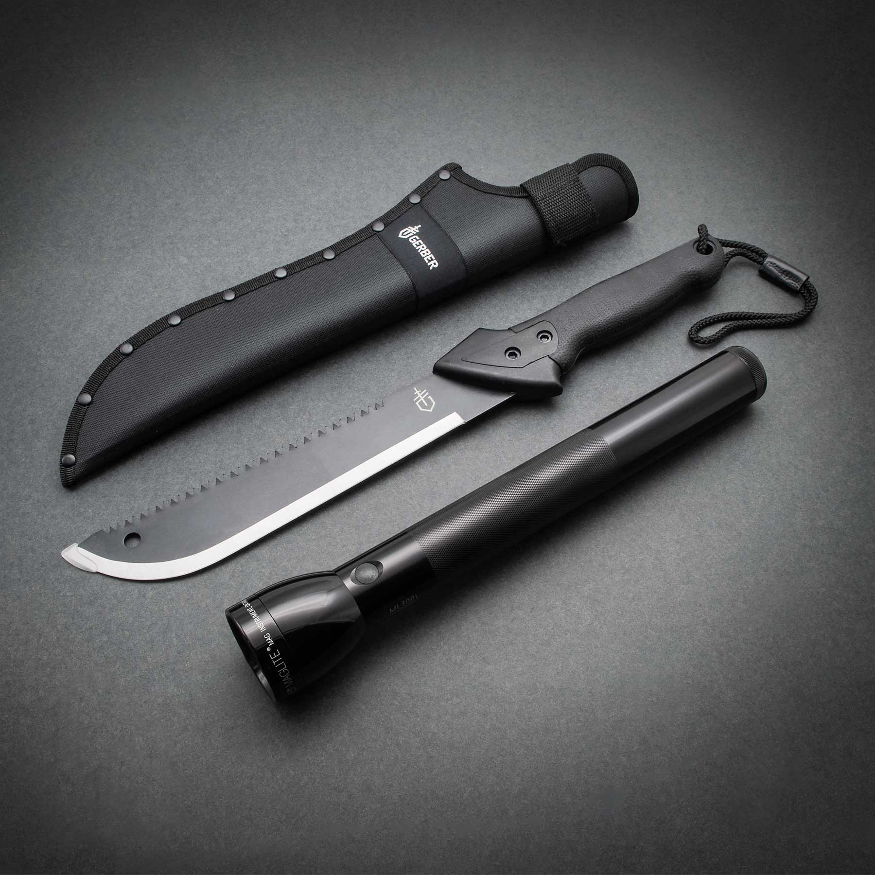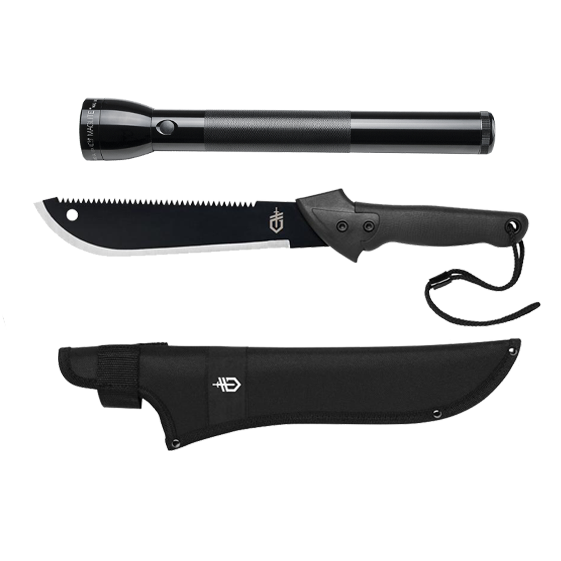 Built as tough as the Gator Machete, the Junior is shorter (18.5") and more packable. The two-sided blade has a fine edge for hacking brush and vines, and a rough cut saw edge for cutting branches, limbs and small trees. It's a high-carbon steel shaft with a Gator grip handle. For back-country travel, the Gator Jr. is the right machete when every bit of weight is accounted for.