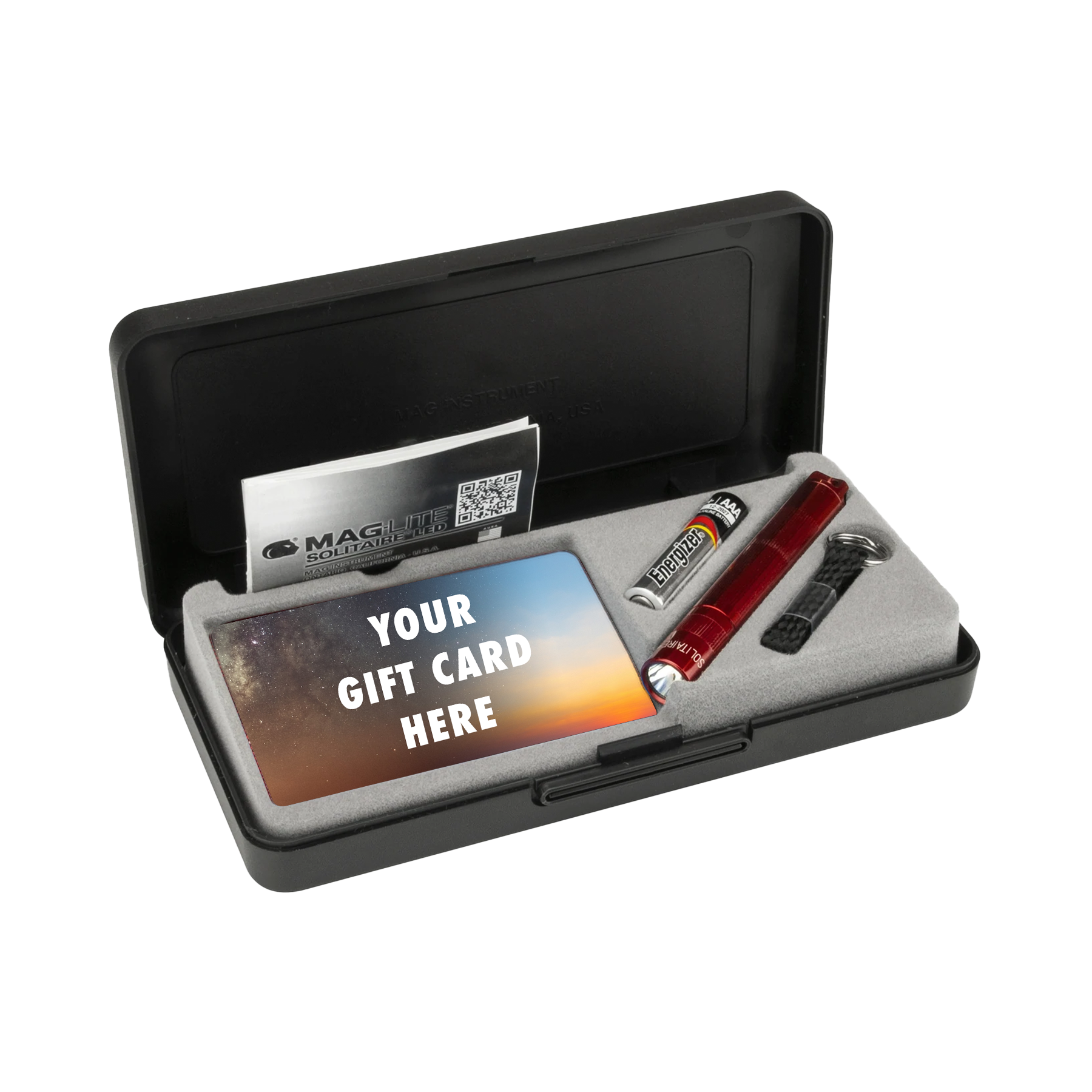 Need a great gift idea? Why not present a gift card from their favorite retailer with an iconic Solitaire flashlight? These presentation boxes also make an elevated way to give your business card.